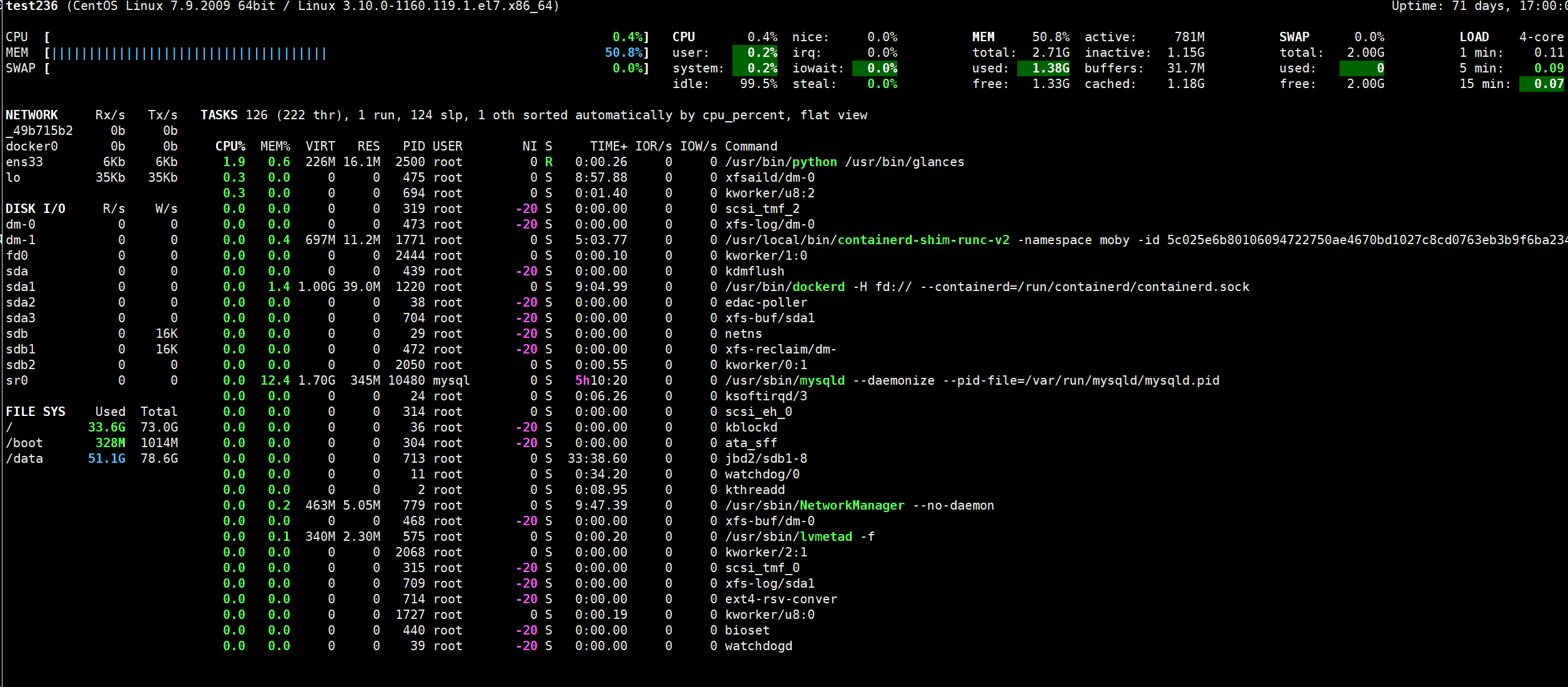 glances -c 192.168.2.236 即可进入 glances 监控界面;